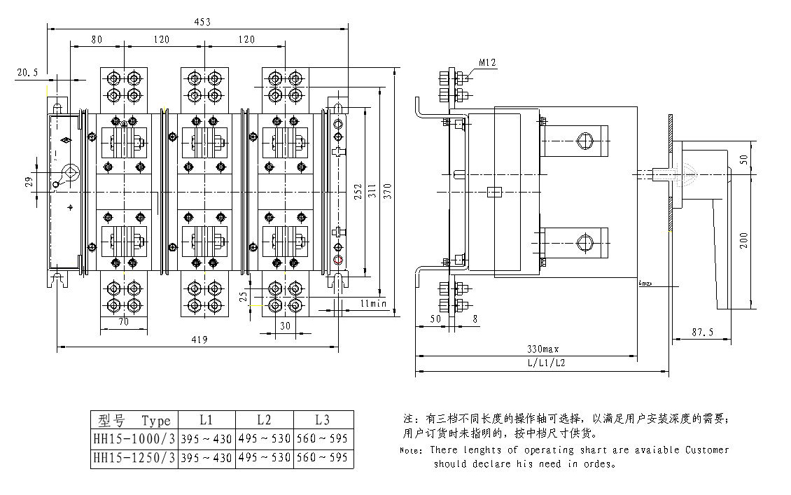 本系列開關(guān)由刀型靜觸頭、滾動動觸頭及滅弧裝置組成的接觸系統(tǒng)均組裝在由耐弧工程塑料制成的封閉底座內(nèi),能達到零飛弧。操作機構(gòu)由具有彈簧儲能的連桿傳動機構(gòu)構(gòu)成,靠彈簧力完成開關(guān)的分、合,使開關(guān)動作無關(guān)人力操作。手柄由操作手柄和傳動軸等構(gòu)成,屬旋轉(zhuǎn)操作方式。當手柄旋轉(zhuǎn)操作時,使操作機構(gòu)彈簧儲能,靠儲能的彈簧力釋放帶動動觸頭與靜觸頭形成合、分兩種狀態(tài),從而達到開關(guān)分合主電路的目的。