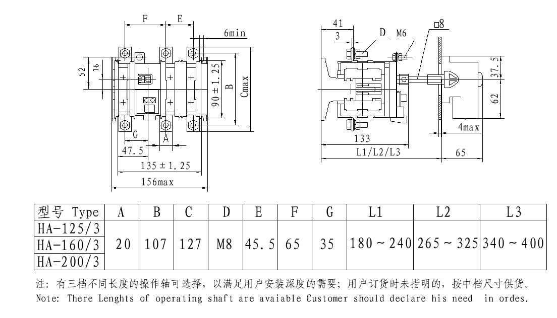 Series HA(QA)、 HP(QP) switch-disconnector are mainly applied in the distribution circuits and motor circuits with high short-circuit currents as the power switches. As the switch handle is in rotary operation, they are especially suitable for installation and application in drawer type switch cabinets. Technical performances confirm to standards IEC60947.3 and GB14048.3.This series switches are of closed structure design. The contact system is composed of static knife contacts, moving rolling contacts and arc quenching sets that are all fitted in the sealed case made of arc resistant engineering plastic and zero arc flash out is achieved. The switching mach-anism is of reliable spring energy stored independent manual operation style.On the upper part of the. switch utmost two auxiliary switches may be quipped in, each having a set of electrical separated normal open and normal closed contacts.